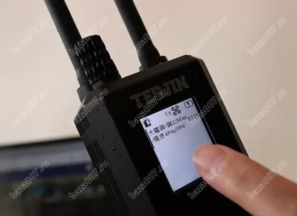 | На экране: | количество обнаруженных дронов, частота и возможная модель каждого дрона Модели обнаруживаемых дронов: DJI, РАRRОТ, АUТЕL, FIМI, YUNЕЕС, НUВSАN, DIY, FРV и гоночные дронов |